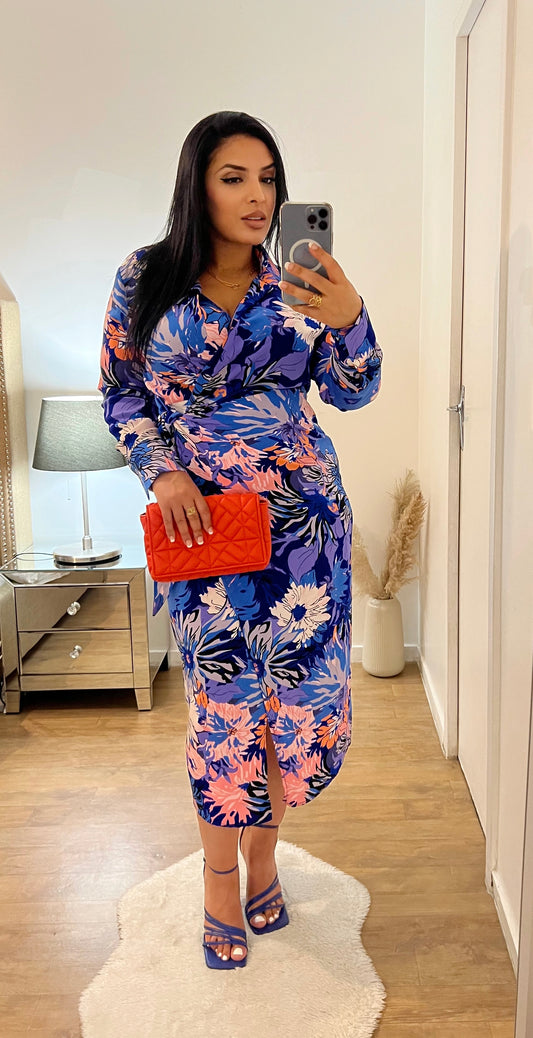 LONGUE ROBE FLEURIE AVEC FENTE SUR LE CÔTÉ